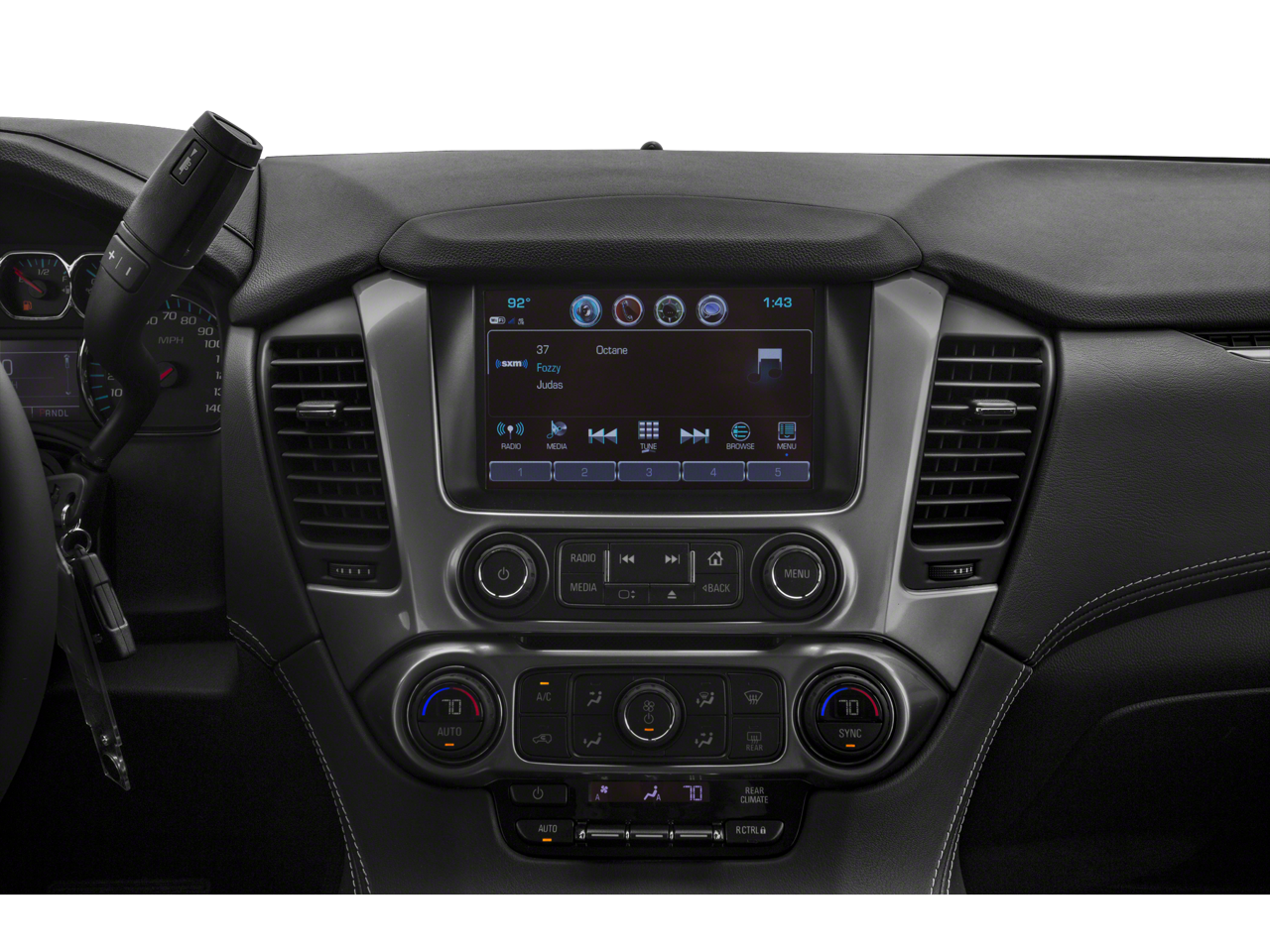 - Audio system, 8" diagonal color touch-screen with Chevrolet Infotainment AM/FM stereo with seek-and-scan and digital clock, includes Bluetooth® streaming audio for music and select phones; voice-activated technology for radio and phone; and Shop with the ability to browse, select and install apps to your vehicle. You can customize your content with audio, weather and more; featuring Apple CarPlay and Android Auto capability for compatible phone; 5 USB ports and 1 auxiliary jack (Includes 2 USB ports when (AZ3) Split-bench front seat is ordered.)