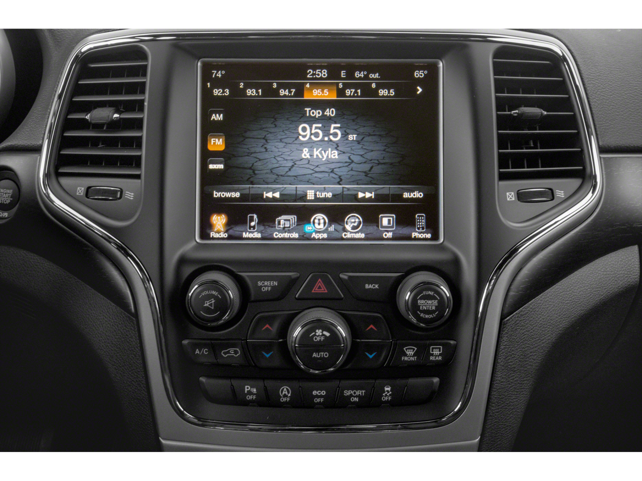 - Radio w/Seek-Scan, Clock, Speed Compensated Volume Control, Aux Audio Input Jack, Voice Activation, Radio Data System and Uconnect External Memory Control
