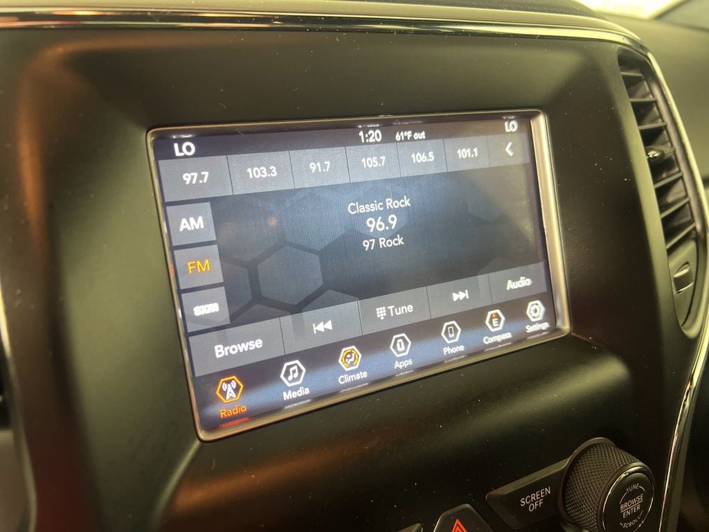 - Radio w/Seek-Scan, Clock, Speed Compensated Volume Control, Aux Audio Input Jack, Voice Activation, Radio Data System and Uconnect External Memory Control