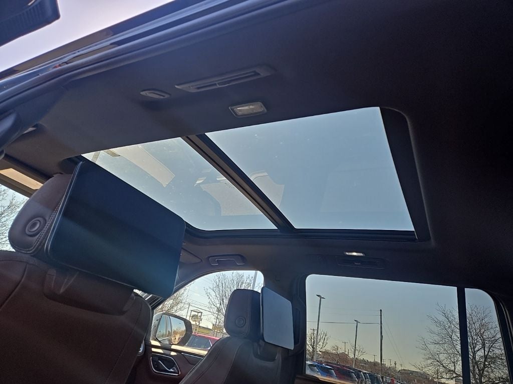 Suburban High Country, 4D Sport Utility, EcoTec3 6.2L V8, 10-Speed Automatic with Overdrive, 4WD, Black, Jet Black/Mocha w/Perforated Leather Seating Surfaces, 10 Speakers, 15 Diagonal Multi-Color Head-Up Display, 1st & 2nd Row Color-Keyed Carpeted Floor Mats, 2-Speed Active Electronic AutoTrac Transfer Case, 3rd Row 60/40 Power-Folding Split-Bench, Air Conditioning, Bose 10-Speaker Surround w/CenterPoint, Bright Front & Rear Door Sill Plates, Chrome Door Handles w/Body-Color Strip, Color-Keyed Carpeting Floor Covering, Driver & Front Outboard Passenger Airbags, Dual Exhaust System, Dual-Pane Power Panoramic Sunroof, Enhanced Automatic Emergency Braking, Enhanced Driver Information Center, Floor Console, Hands-Free Rear Power Programmable Liftgate, HD Surround Vision, Heated & Ventilated Driver & Front Passenger Seats, Heated 2nd Row Outboard Seats, Heated Driver & Front Passenger Seats, Heated Steering Wheel, Hill Descent Control, Infotainment Display, Inside Rearview Auto-Dimming Rear Camera Mirror, Lane Change Alert w/Side Blind Zone Alert, LED Daytime Running Lamps, License Plate Front Mounting Package, Memory Settings, Navigation System, Outside Heated Power-Adjustable Mirrors, Power Release 2nd Row Bucket Seats, Power Tilt & Telescopic Steering Column, Power-Retractable Assist Steps, Preferred Equipment Group 3LZ, Premium Package 2, Rear air conditioning, Rear Camera Mirror Washer, Rear Cross Traffic Alert, Rear Pedestrian Alert, Remote Start, Safety Alert Seat, SiriusXM Radio w/360L, Universal Home Remote, Wireless Charging, Wrapped Steering Wheel.