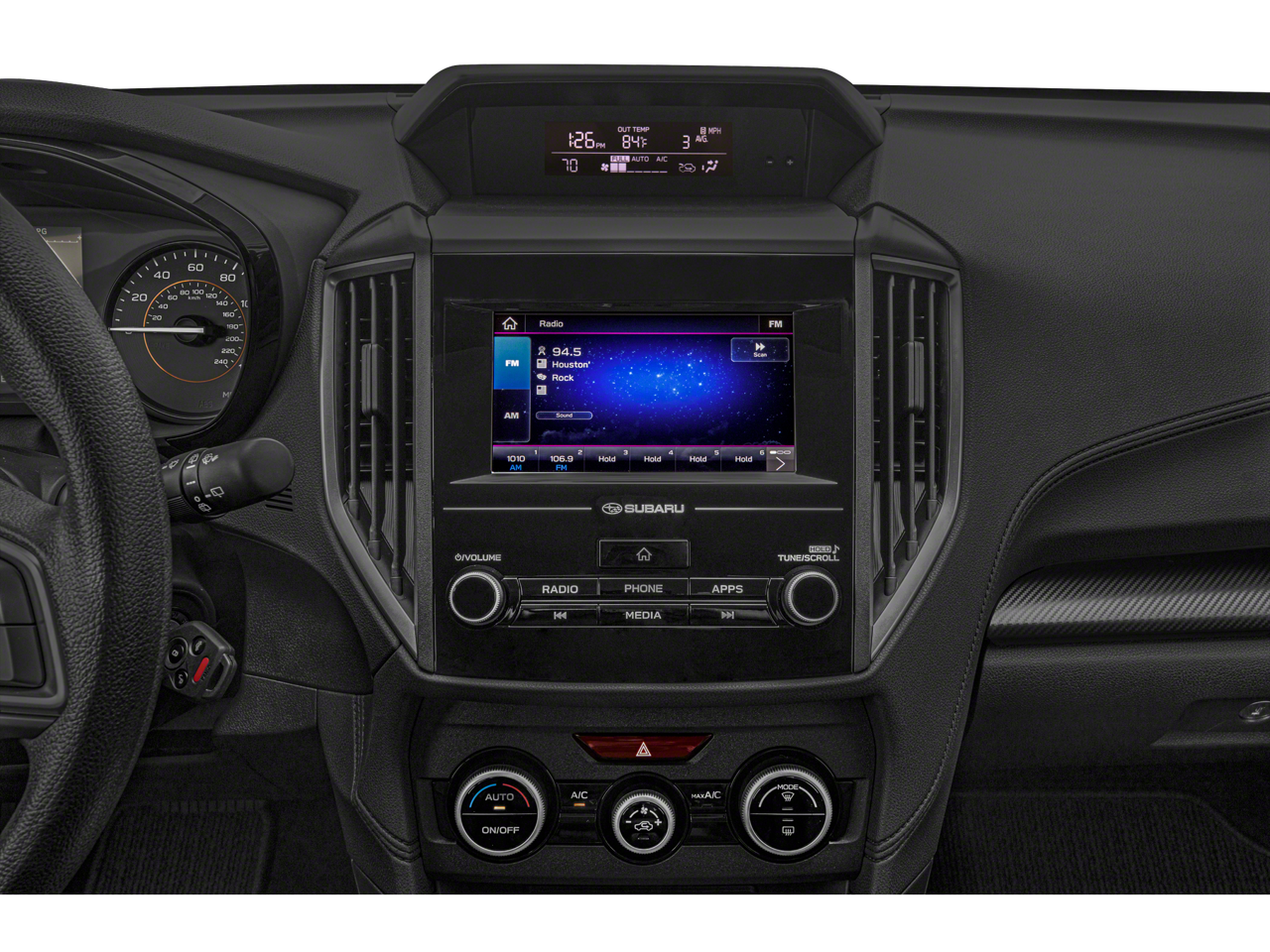 - Radio: Subaru STARLINK 6.5" Multimedia System -inc: AM/FM stereo, multi-touch gesture high resolution display screen, voice activated controls, Bluetooth® audio streaming and hands-free phone connectivity, Bluetooth® hands-free SMS text messaging connectivity, iPod control capability, smartphone integration: AHA, Android Auto, CarPlay, Pandora and STARLINK cloud applications, USB audio system update, steering wheel audio and Bluetooth® control switches, 4 speakers (2 front door and 2 rear door), 3.5mm auxiliary input jack and front USB A input/charge port