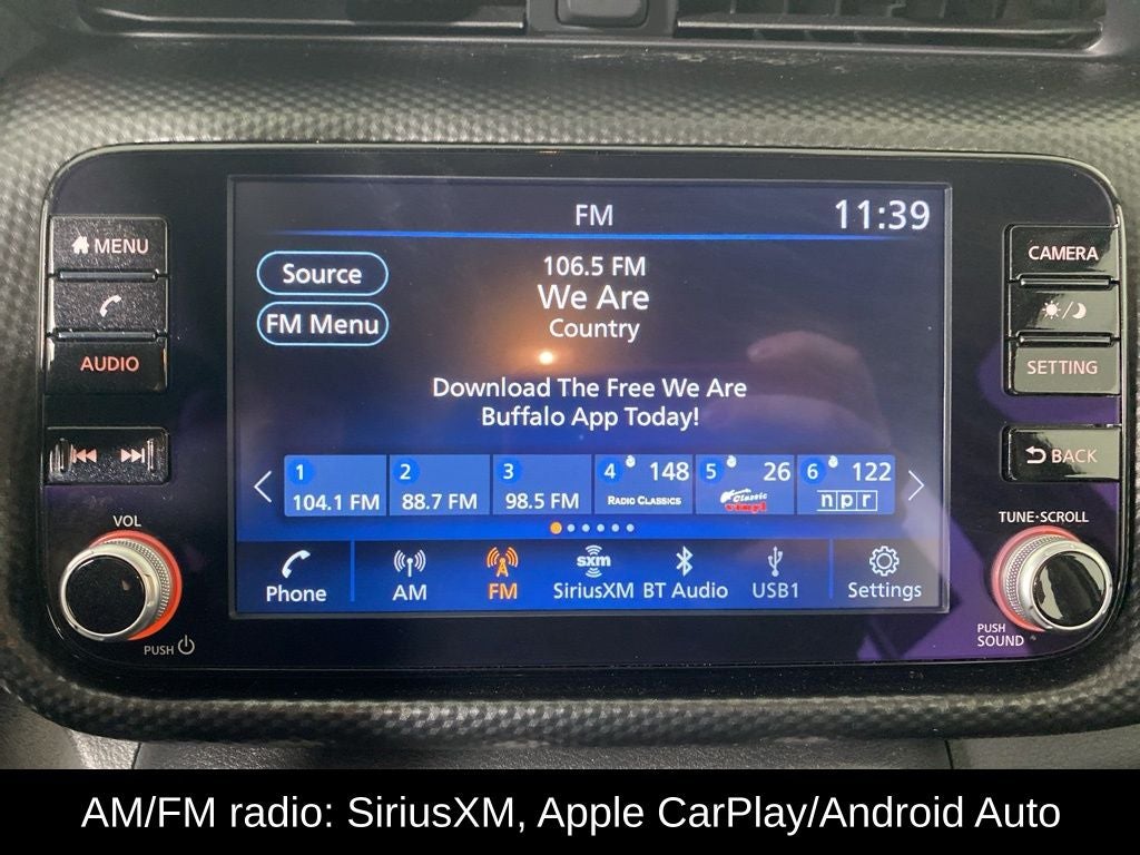 - Radio: AM/FM Audio System -inc: 8" color touchscreen display w/6 speakers, Bluetooth® hands-free phone system, streaming audio via Bluetooth®, Siri Eyes Free, audio and Bluetooth® steering wheel switches, 3 USB ports (1x front charge and data and 2x rear charge only), type C USB (data and charge) (front), NissanConnect featuring Apple CarPlay, Android Auto, SiriusXM satellite radio w/advanced auto features and hands-free text messaging assistant