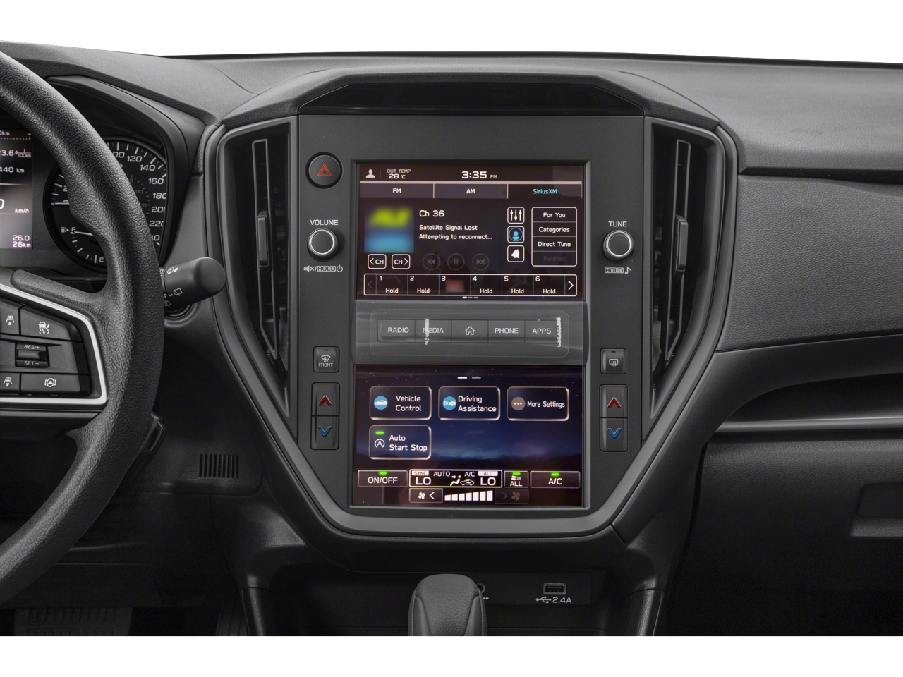 - Radio: Subaru STARLINK Dual 7.0" Multimedia System -inc: AM/FM stereo, multi-touch gesture high resolution display screen, voice activated controls, Bluetooth® audio streaming and hands-free phone connectivity, Bluetooth® hands-free SMS text messaging connectivity, iPod control capability, rear-vision camera display, SiriusXM All Access radio (4 months free trial/subscription required after), SiriusXM Travel Link (4 months free trial/subscription required after), smartphone integration: Android Auto, Apple CarPlay, USB audio system update, 4 speakers, illuminated 3.5mm auxiliary input jack, illuminated USB A input charge port and roof mounted black antenna