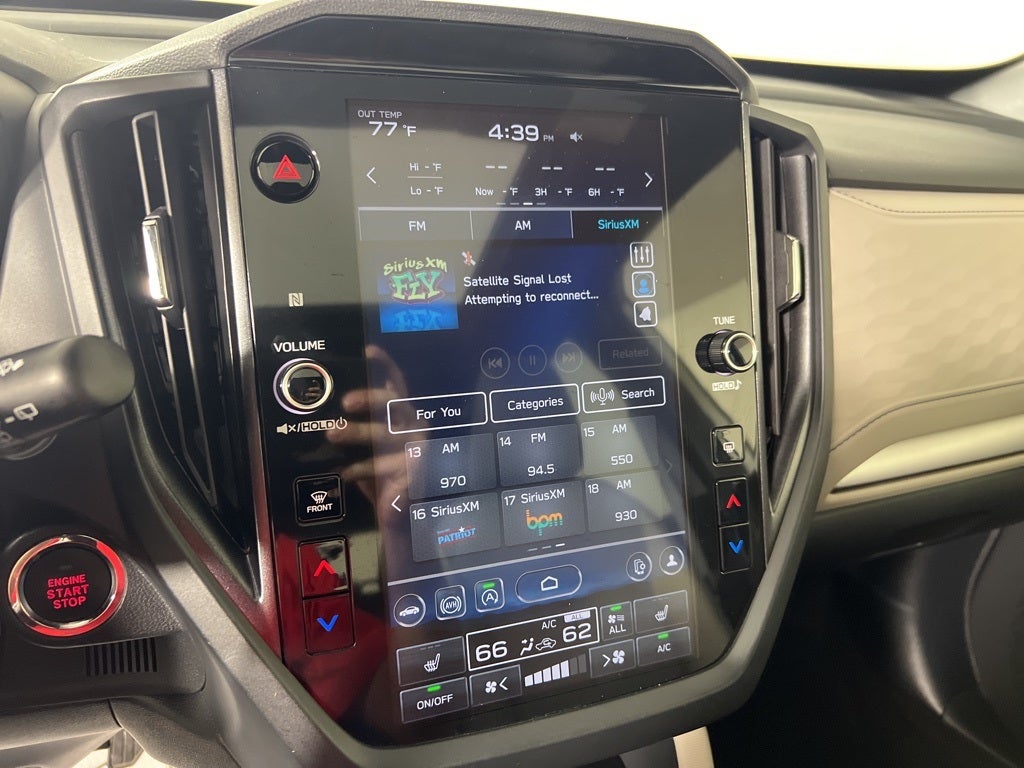 - Radio: Subaru 11.6" Multimedia Plus System -inc: valet mode, integrated center information display, AM/FM stereo HD Radio, multi-touch gesture high resolution display screen, voice activated controls, Bluetooth® audio streaming and hands-free phone connectivity w/SMS text messaging connectivity (refer to subaru.com for cell phone compatibility), iPod control capability, SiriusXM w/360L (4 months free trial/subscription required after), SiriusXM Travel Link (3 years free trial/subscription required after), smartphone integration for Android Auto and Apple CarPlay w/full screen view and wireless connection, USB and Over The Air (OTA) audio system update, steering wheel control switches for audio and Bluetooth®, 6 speakers, 3.5mm auxiliary input jack and roof mounted audio and satellite antenna