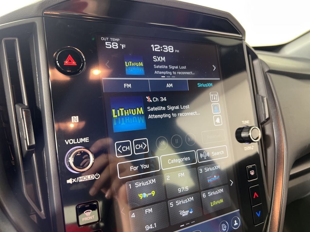 - Radio: Subaru 11.6" Multimedia Plus System -inc: valet mode, AM/FM stereo, HD Radio, multi-touch gesture high resolution display screen, voice activated controls, Bluetooth® audio streaming and hands-free phone connectivity, Bluetooth® hands-free SMS text messaging connectivity, iPod control capability, SiriusXM w/360L (4 months free trial/subscription required after), SiriusXM Travel Link (4 months free trial/subscription required after), smartphone integration: Android Auto w/full screen view and wireless connection, Apple CarPlay w/full screen view and wireless connection, USB and Over The Air (OTA) audio system update, audio system and Buletooth steering wheel control switches, 6 speakers, illuminated 3.5mm auxiliary input jack, illuminated USB A and C input charge ports, roof mounted black antenna and satellite connected services